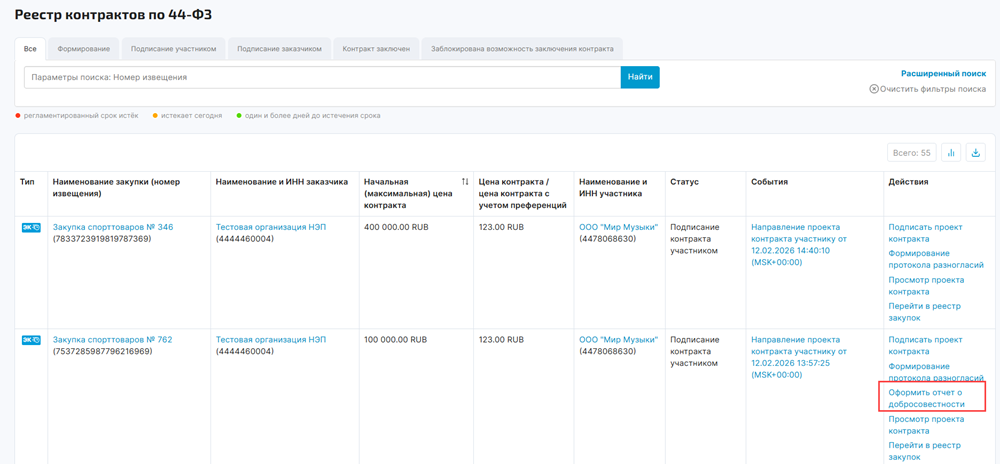 Оформление отчёта о добросовестности для участников закупок по 44-ФЗ